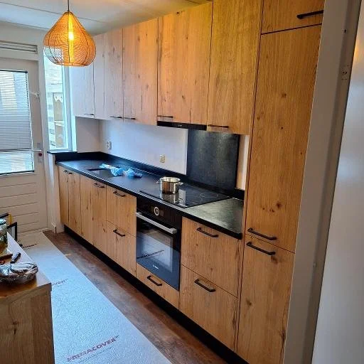 Mart Schultink 18-10-2024 Mart Schultink 18-10-2024 Een keuken met kasteeleiken fronten en in een Ral9010 gespoten omlijsting. Meer lezen